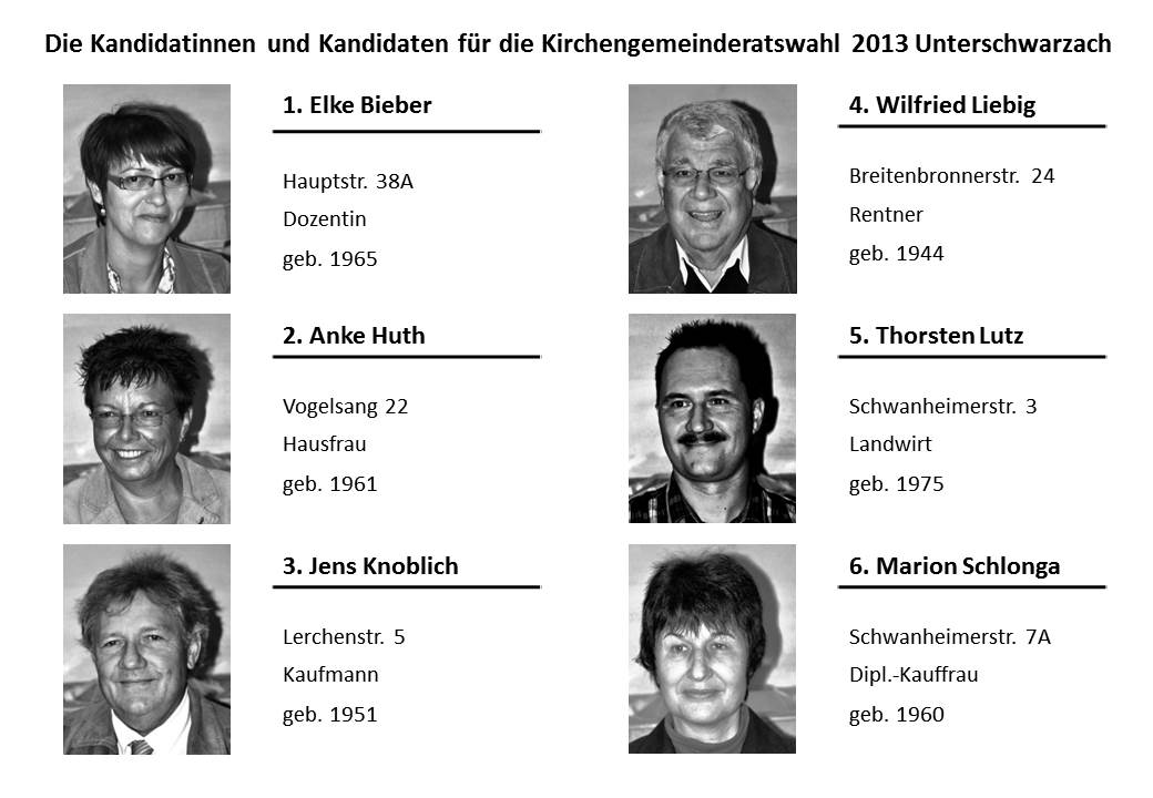 Ergebnisse der Kirchenwahl am 1 .12. 2013 in Unterschwarzach