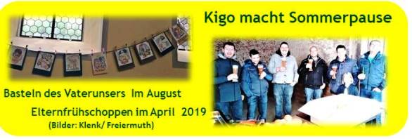 Mit dem Basteln des Vaterunsers ging der Kigo Michelbach in die Sommerpause. Was die Kinder gebastelt und gemalt haben, hängt jetzt in unserer Kirche. Allen zusammen macht es viel Spaß- auch den Eltern. Ein Dank geht an Roland Brandt, der das Bier für einen Frühschoppen spendierte, den die Kigo-Väter im April organisiert haben. Er fand nach dem Gottesdienst im Pfarrhof statt. Dazu gab es Würstchen, Kuchen und Kaffee. Viele freundliche Helfende hatten sich beteiligt, sodass der Vormittag zu einem schönen Erlebnis für alle wurde.