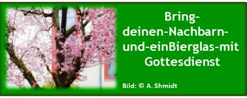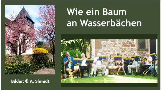 Zu einem Gartengottesdienst unter dem Motto „Wie ein Baum gepflanzt an Wasserbächen“ laden die beiden evangelischen Kirchengemeinden Michelbach und Unterschwarzach ein. Es spielt der Posaunenchor Aglasterhausen-Unterschwarzach. Anschließend Einladung zum Kirchenkaffee und Spielgelegenheit für Kinder. Bei schlechtem Wetter findet der Gottesdienst in der Kirche statt.