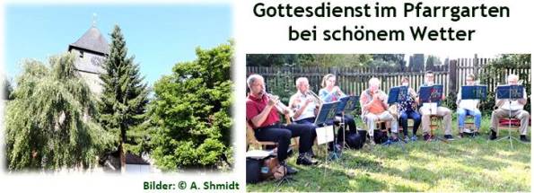 Bei schönstem Sommerwetter fand jetzt in Michelbach der Sonntagsgottesdienst im Pfarrgarten statt. Es spielten der Posaunenchor und Susanne Kaiser. Anschließend waren alle zum Kirchenkaffee eingeladen. Mehr als 70 Teilnehmende sangen miteinander Lieder wie „Geh aus mein Herz und suche Freud“ und „Die güldne Sonne“
