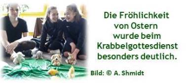 *Am Freitag nach Ostern Auferstehungsgottesdienst im Altenpflegeheim Glück im Winkel in dem die teilnehmenden Bewohnerinnen und Bewohner lauthals riefen: „Der Herr ist wahrhaftig auferstanden!“ *
