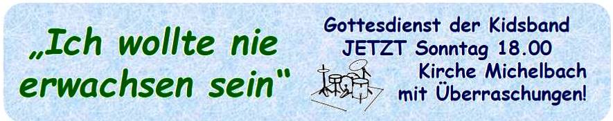 Die Kinder freuen sich bereits auf das Kidsband-Wochenende 9.-10.3. in Michelbach. Wer neu dazu kommen möchte, kann das gern tun. Wir proben neue Lieder und singen die dann auch gleich am Sonntag. Den Gottesdienst gestalten wir gemeinsam. Bei uns kann man: ein Instrument spielen, singen, tanzen. Herzliche Einladung an Kinder der vierten und fünften Klassen. Anmeldung noch bis Donnerstag, 7. März bei Pfarrerin Angelika Schmidt