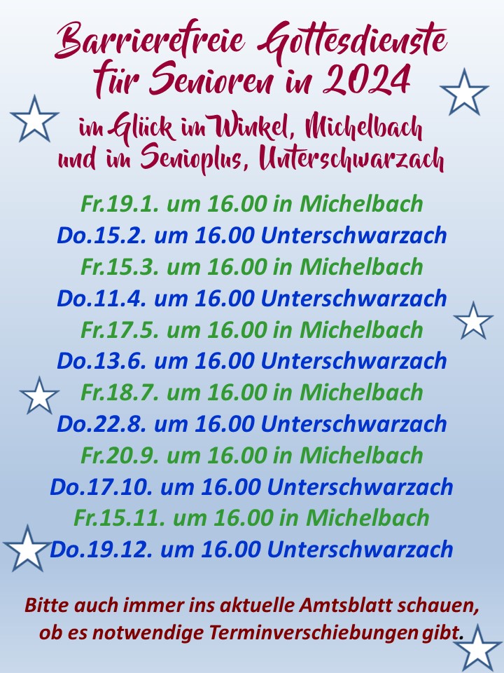 Die Kirchengemeinderäte Michelbach und Unterschwarzach und Pfarrerin Angelika Schmidt wünschen Ihnen Gottes Segen für das Jahr 2024.